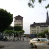 Самое заметное сооружение на площади – единственная сохранившаяся Башня замка на северном краю площади. Она визуально доминирует над открытой лестницей на западной стороне и хорошо смотрится со стороны Рейна.