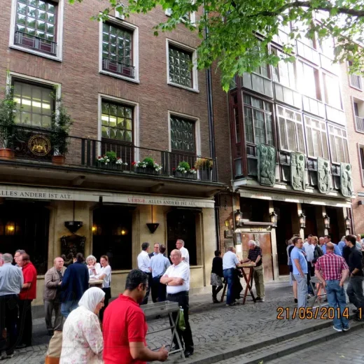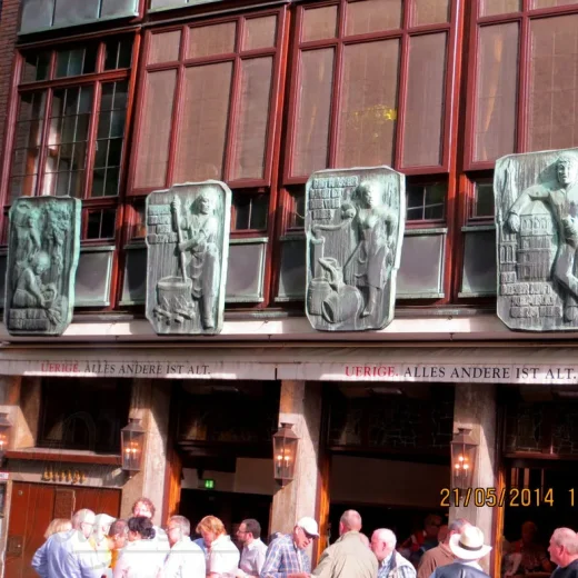 Пили классику «Юриге Альтбир (Uerige Alt)» - дюссельдорфский альтбир, алк. 4.7%, IBU 52. Фирменное пиво верхового брожения варится с 1862 года из ячменного, карамельного и жареного солодов, хмеля сорта «Umbel», воды и наших уникальных дрожжей Uerige, полнотелый, ароматный и приятный.