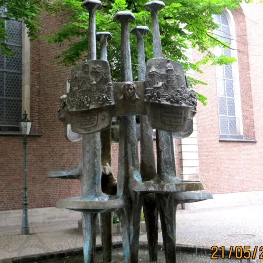 На небольшой треугольной площади со стороны восточного бокового фасада церкви Святого Максимилиана расположен интересно оформленный фонтан Хайматбрунен (Heimatbrunnen). Название можно перевести с немецкого как «Фонтан родного города».