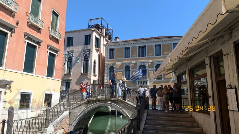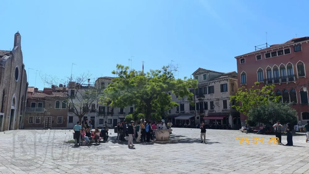 От церкви Сан-Джорджо деи Гречи отправляемся к церкви Сан-Джиовани ин Брагора (San Giovanni in Bragora). Путь идет по оживленным венецианским улочкам, заполненным туристами, сувенирными магазинами и кафе-ресторанами.