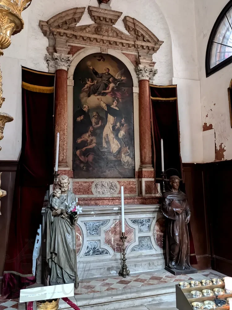 Эти алтари исчезли, но сами полотна остались в церкви - первое размещено на стене правого нефа, слева от двери в ризницу, второе там же, но правее двери в ризницу.