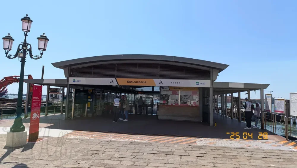 Вапоретто Маршрута 1 направления Лидо - Пьяццале Рома, которым проще всего добраться от Giardini, места нашего базирования, причаливает к дебаркадеру E. Он предпоследний по ходу, расположен неподалеку от канала перед Дворцом Дожей.