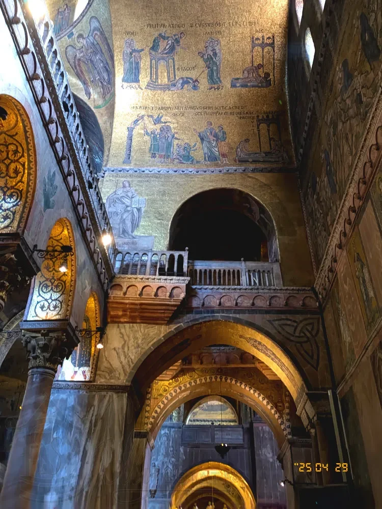 Ученые сходятся во мнении, что грандиозный иконографический план внутренних помещений Собора Сан Марко был завершен уже в течение XII века. Мозаики в верхней части собора рассказывают о событиях Нового Завета с великим посланием христианского спасения.