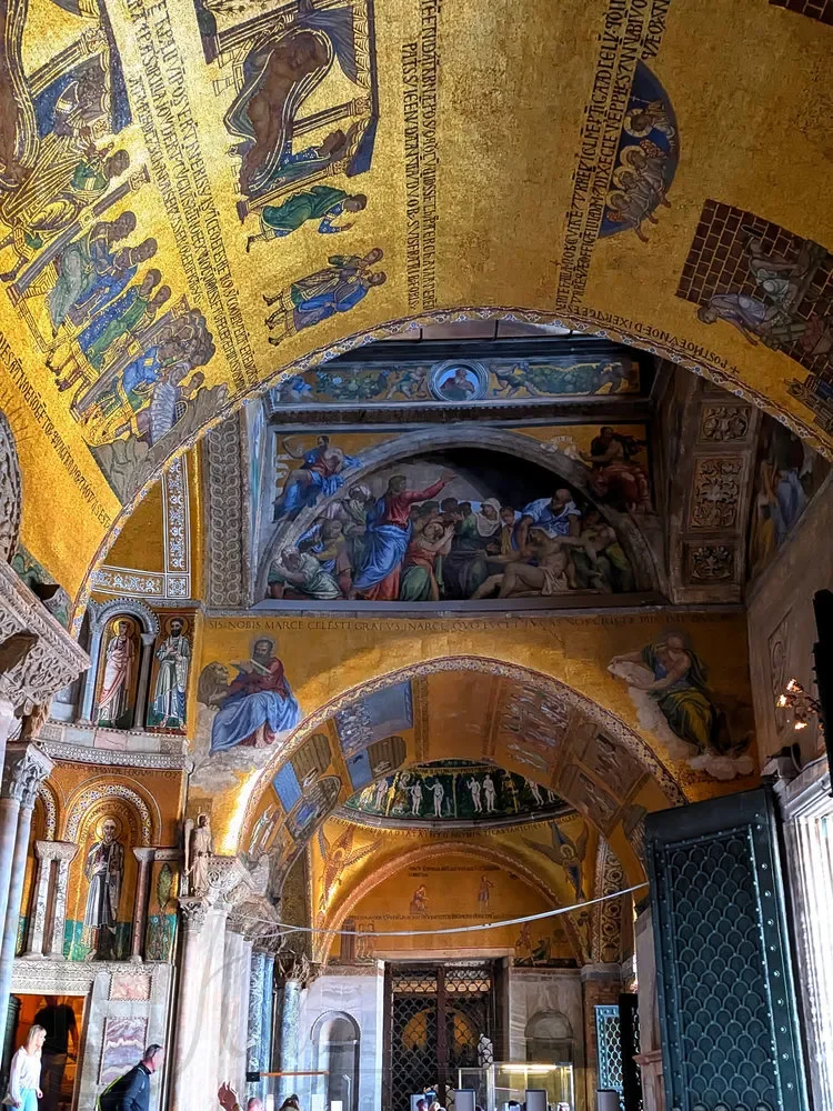 Основной способ украшения интерьеров Собора Сан Марко — это мозаика, преобладающий цвет которой – золото. Площадь мозаики более 8000 квадратных метров, она везде и на стенах, и на сводах, и на куполах собора.