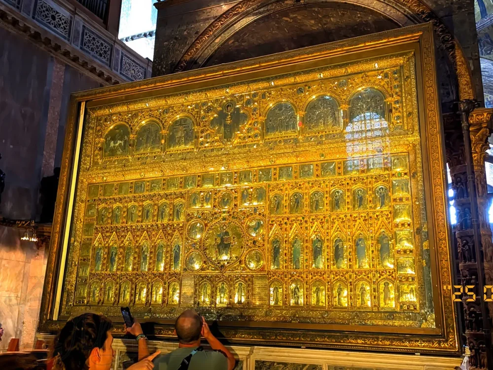 Пала де Оро (Pala d'Oro) – золотой алтарь и сегодня находится на своем первоначальном месте. Он была заказан (а не украден!) в Византии, в Константинополе в 1102 году и завершен в 1105 году.