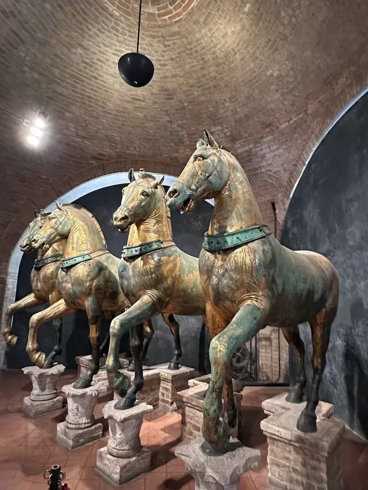 Сегодня на лоджии базилики вместо оригиналов, хранящихся внутри музея, расположились копии четырех лошадей из позолоченной бронзы.
