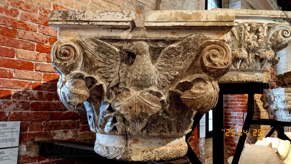 Всего под музей отдано шесть больших залов. В первом зале находятся шесть капителей и связанные с ними колонны портика дворца четырнадцатого века, когда-то обращенные к Сан Марко.