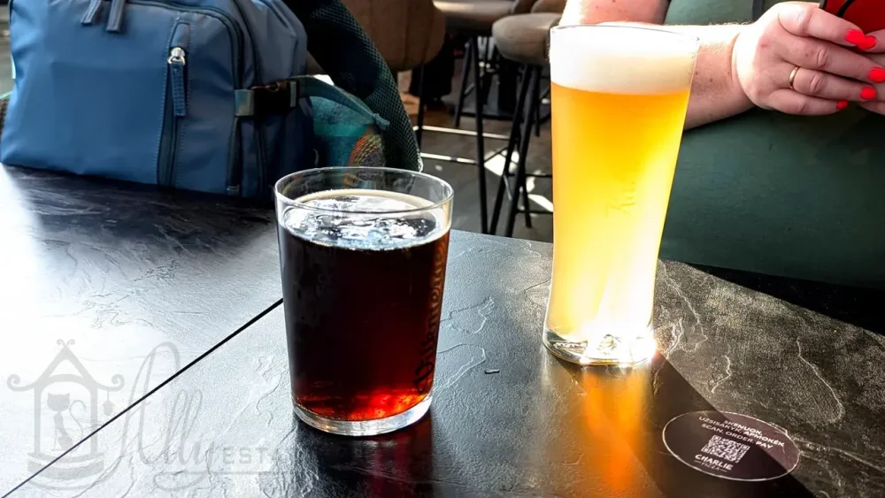 Пиво наливают местное. Взяли по бокальчику темного Vilkmergės TAMSUSIS (алк. 5.0%) и светлого Kalnapilis Grand Select (алк. 5.2%). Оба простенькие по вкусу, так как будто разбавленные. Наверное, ими можно запивать еду, но не наслаждаться смакуя.