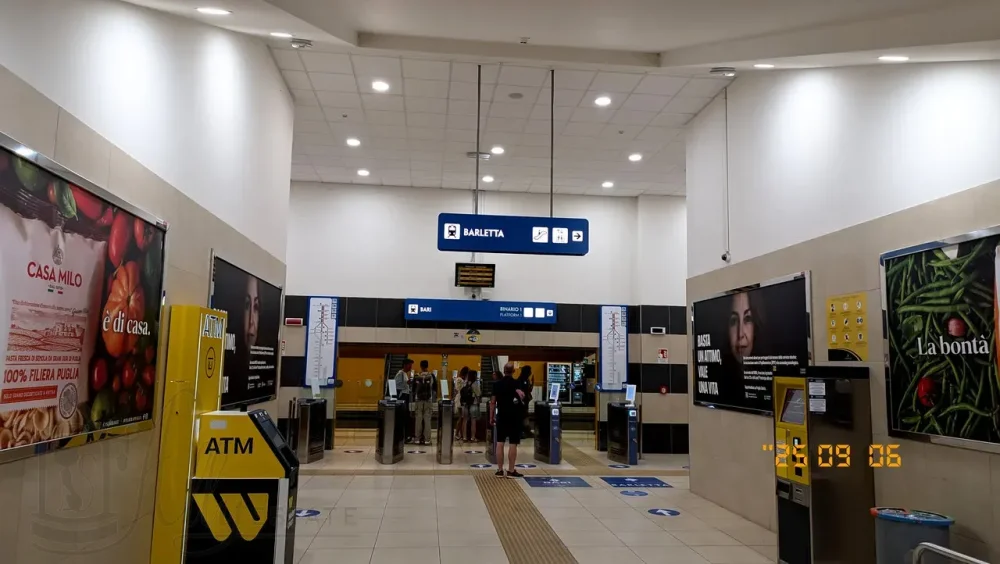 В моей статье про аэропорт и на сайте самого аэропорта расписаны способы добраться в Бари и на побережье. Но поздний прилет фактически оставляет один вариант добраться из аэропорта в Барлетту - электричка.