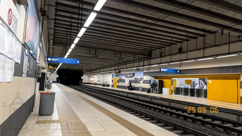 Кому интересно, на платформе электрички на Барлетту мы были через 12 минут после выхода из зоны прилёта в общедоступную.