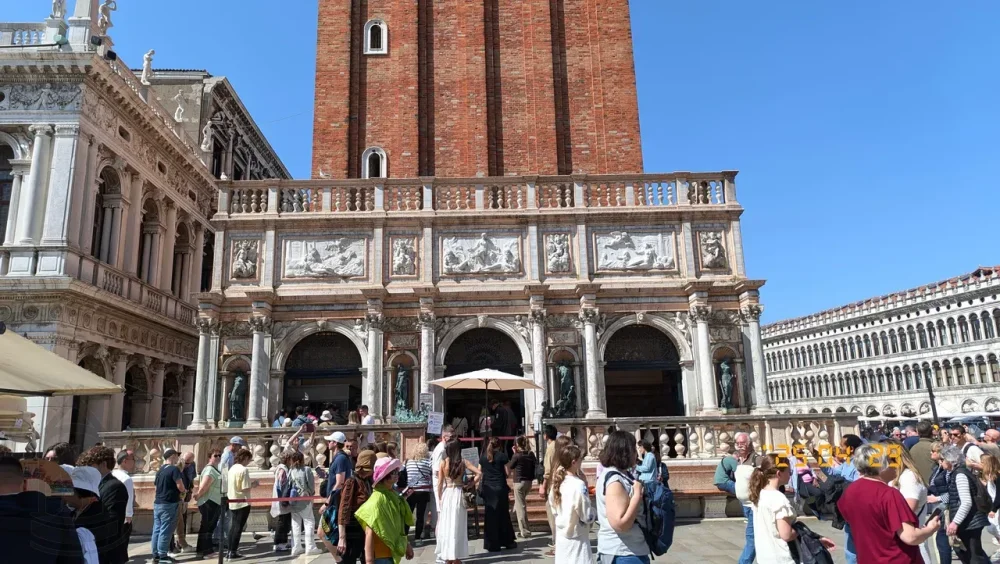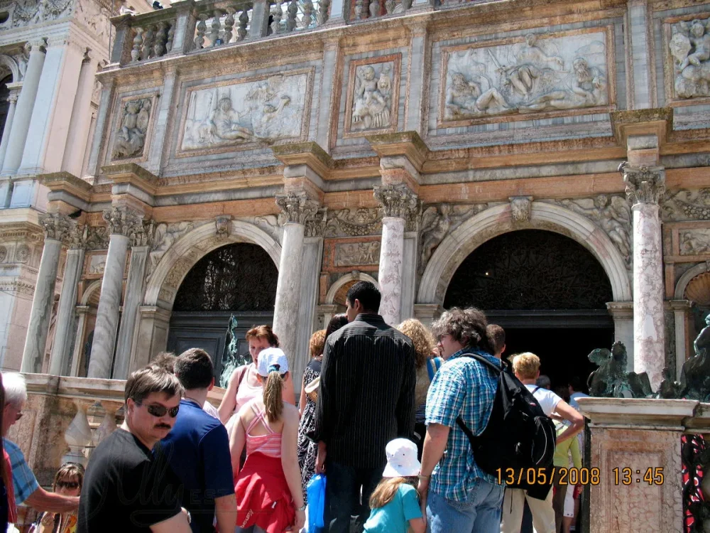 Мы только что закончили осмотр Дворца Дожей Венеции и пройдя красивейшими воротами Порта делла Карта выходим на площадь перед дворцом и Собором Сан Марко.