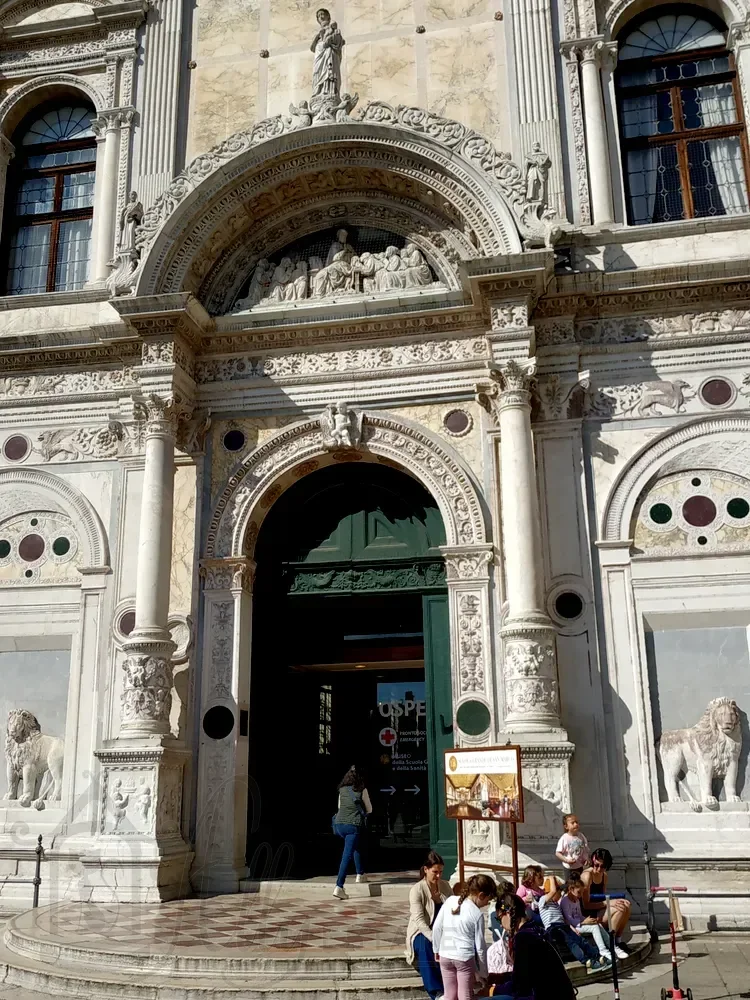 Скуола Гранде-ди-Сан-Марко сохранила свое здание эпохи Возрождения, фасад которого украшает многочисленная резьба по камню. Выступающие верхние части фасада, вероятно, были задуманы как напоминание о куполах церкви Сан-Марко.