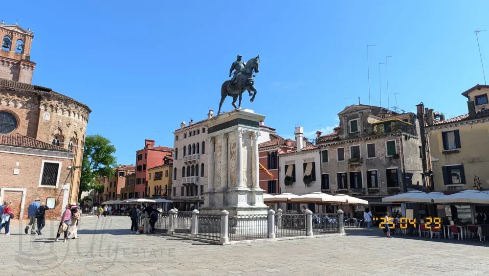 Это памятник контодьеру Бартоломео Коллеони, работа флорентийского скульптора Андреа Верроккьо (Andrea del Verrocchio, 1435-1488 гг.). О памятнике я писал в одной из статей о прошлой поездке в Венецию.